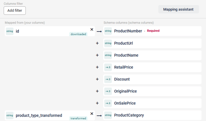 ⚠️When reaching the Transform & map step, make sure you are mapping the PIM parameters in the correct fields in your PIM data Schema.